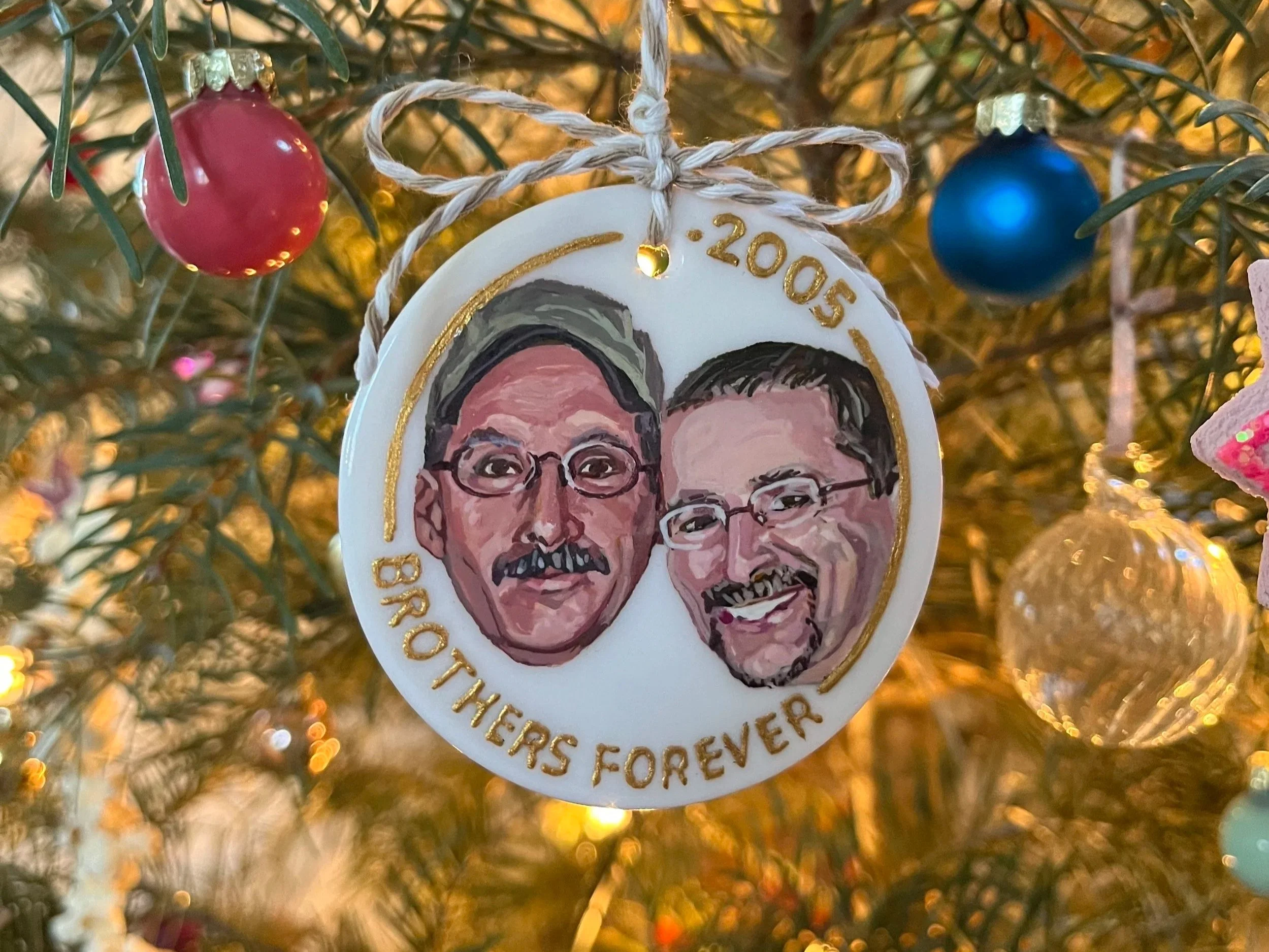 These hand painted ceramic ornaments are the perfect gift for a new family, a lover, or to remember someone they lost.